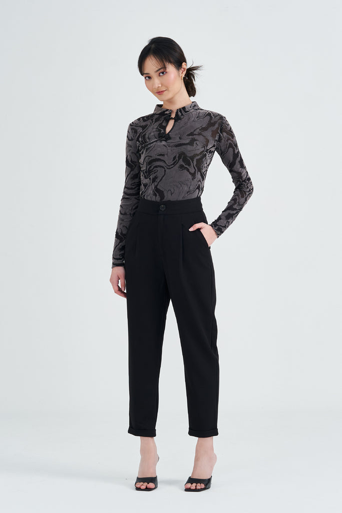 Olwyn Mandarin Collar Velvet Top